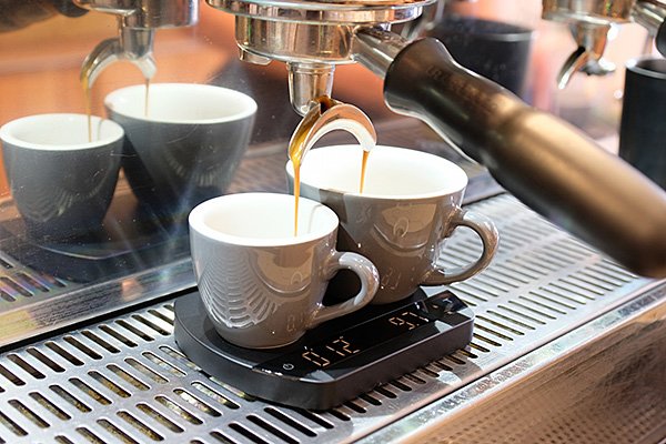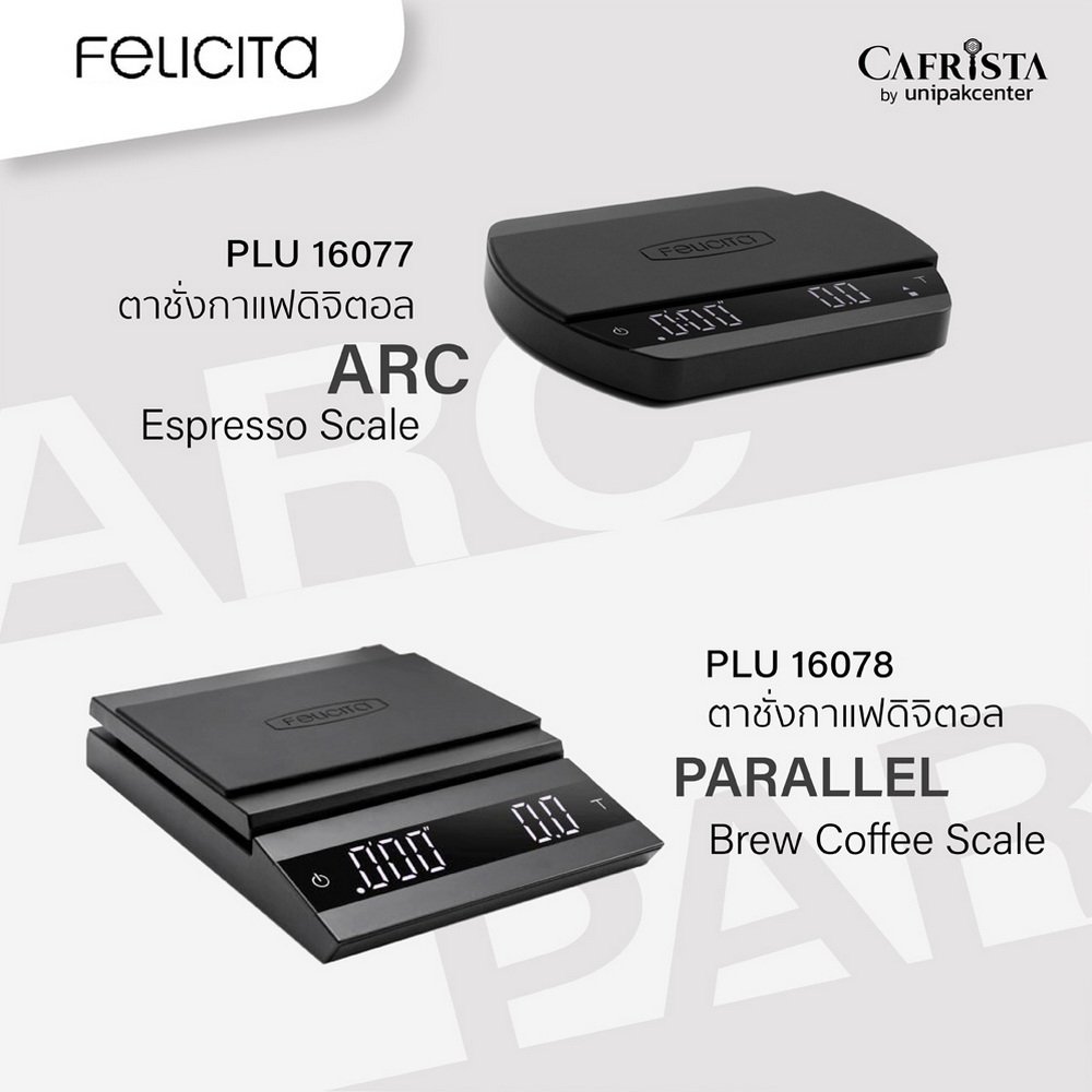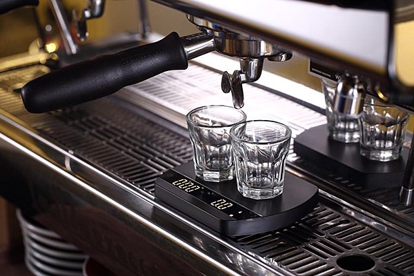 ตาชั่ง Felicita Arc ใช้สำหรับชั่งน้ำหนักพร้อมจับเวลาสำหรับการชงกาแฟ espresso (เนื่องจากเครื่องขนาดเล็กพอดีสำหรับวางแก้วช๊อต 2 ใบ)